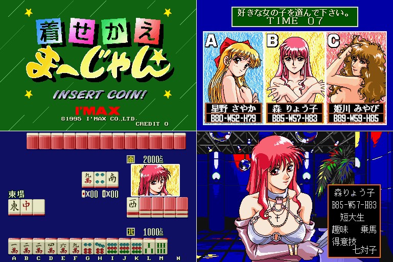 1995年、I'MaxのMACSシステムボード「着せかえまーじゃん」がゲーム途中でリセットされる問題はあるものの、プレイ可能と言う事で、スナップが公開されております。。。