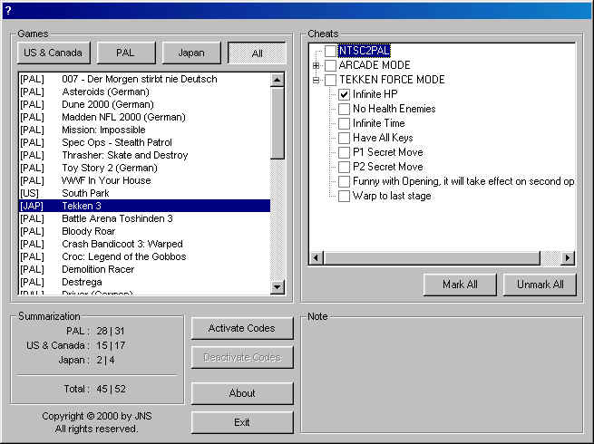 プレステのチートコードを含むツールです。ePSXe等で