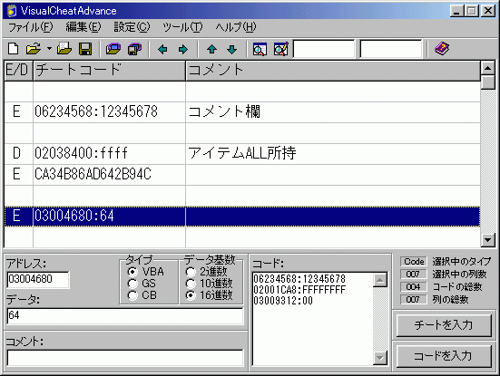 VBA専用のチートコード作成ソフトです。使用方法は