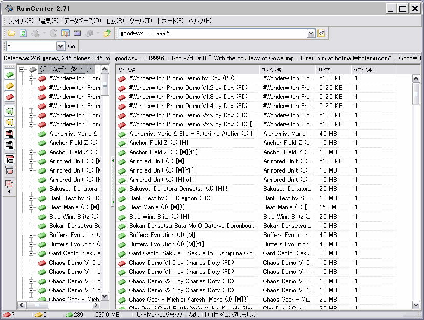 現在も頻繁に更新が行われているロム管理ソフトです。